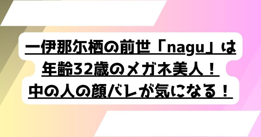 一伊那尓栖の前世「nagu」は年齢32歳のメガネ美人!中の人の顔バレが気になる!